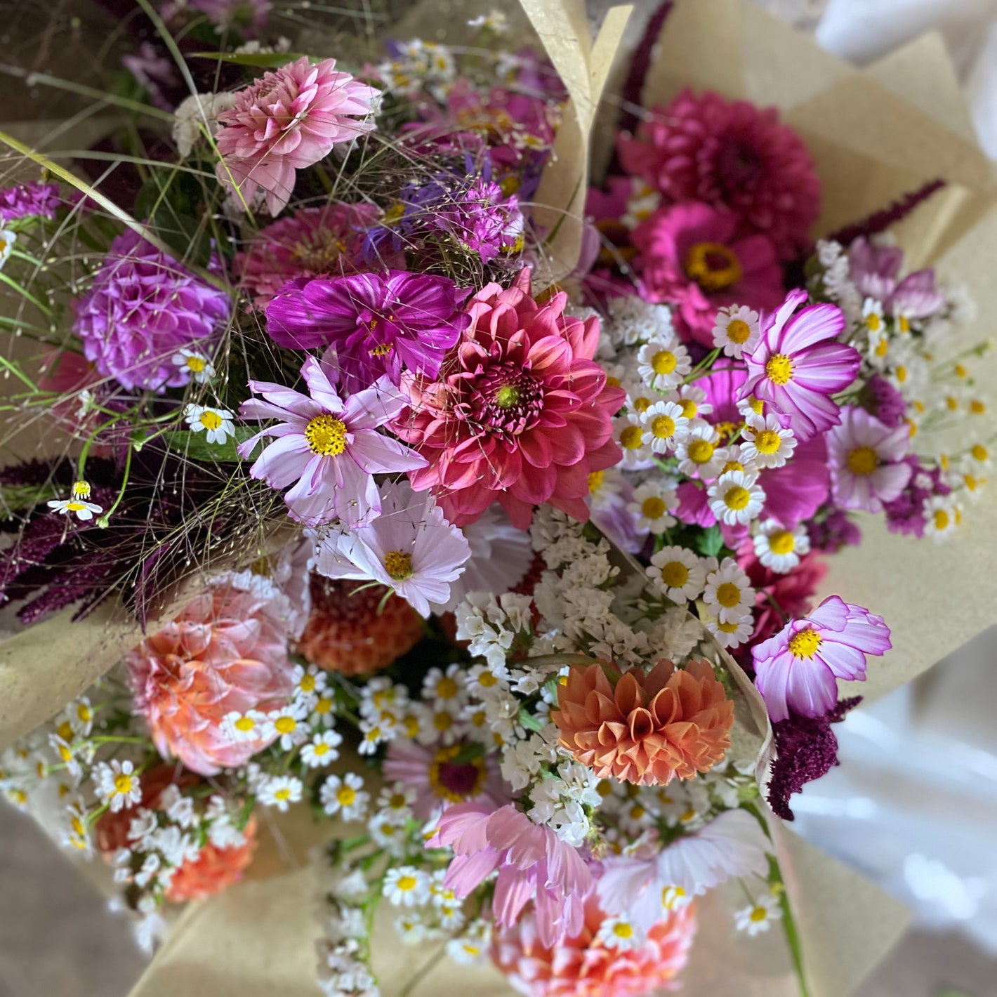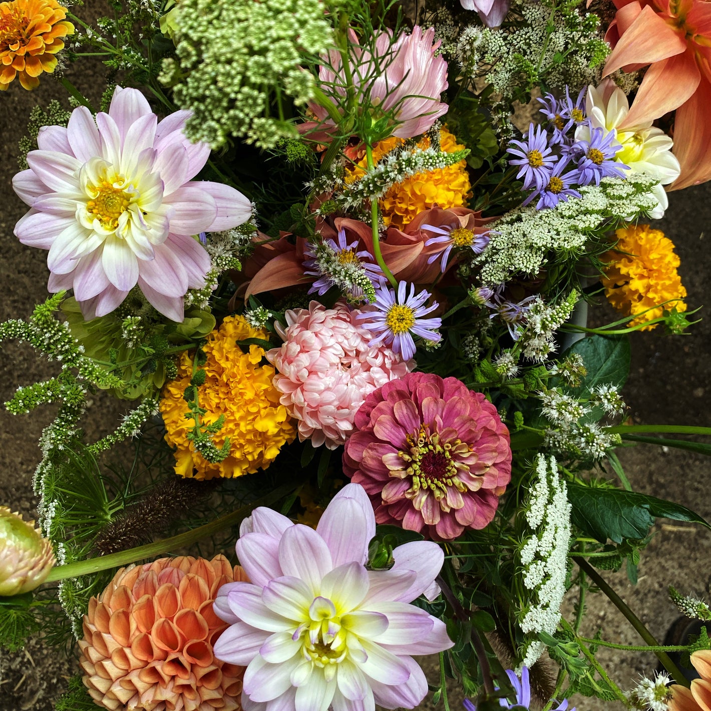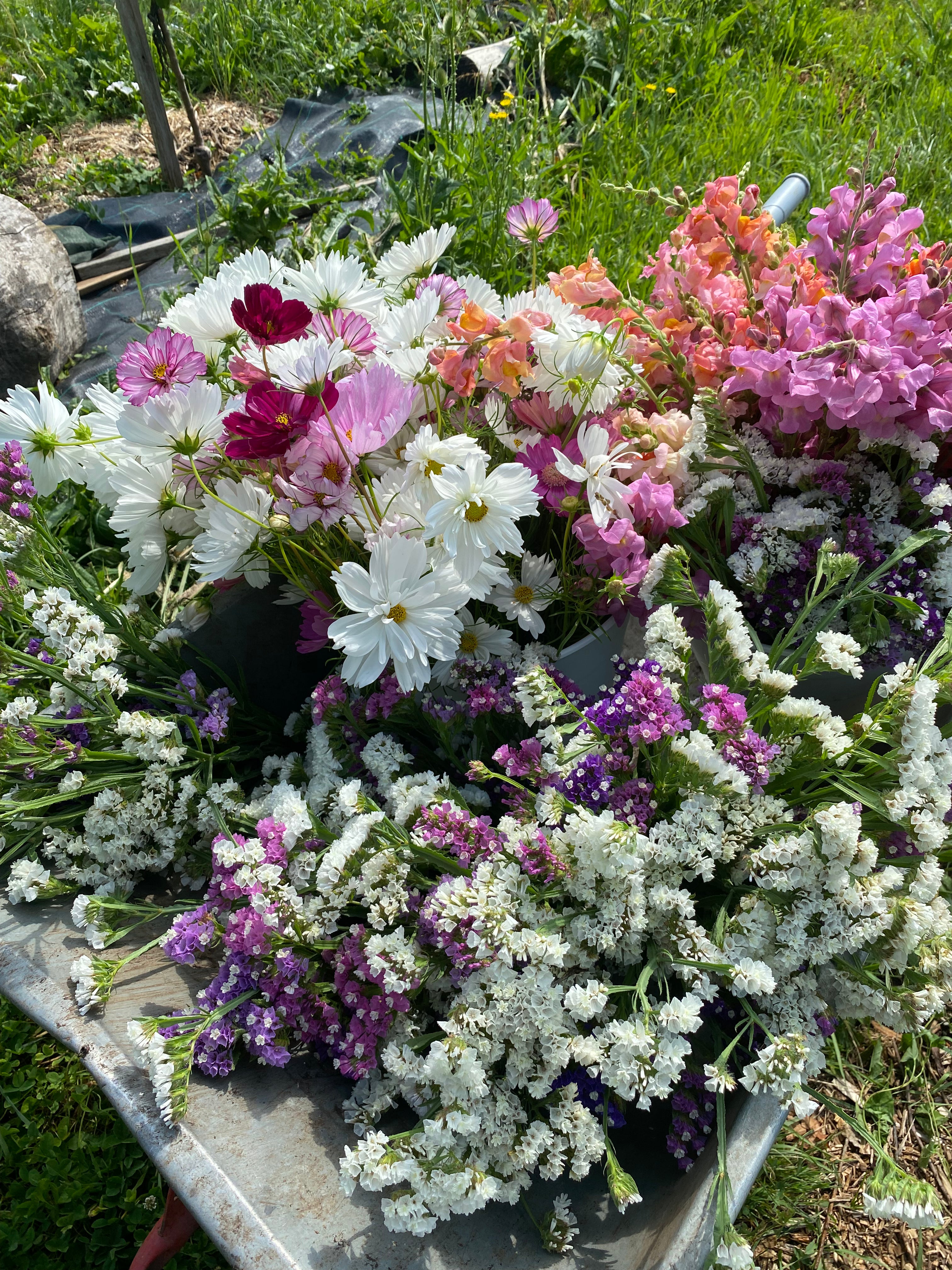 Unsere Blumen wachsen aus Samen auf unserem Hof, im Wechsel der Jahreszeiten. Sie unterstützen Insekten und andere Lebewesen, stärken mit ihren Wurzeln den Boden und kehren am Ende der Saison als Kompost zur Erde zurück.