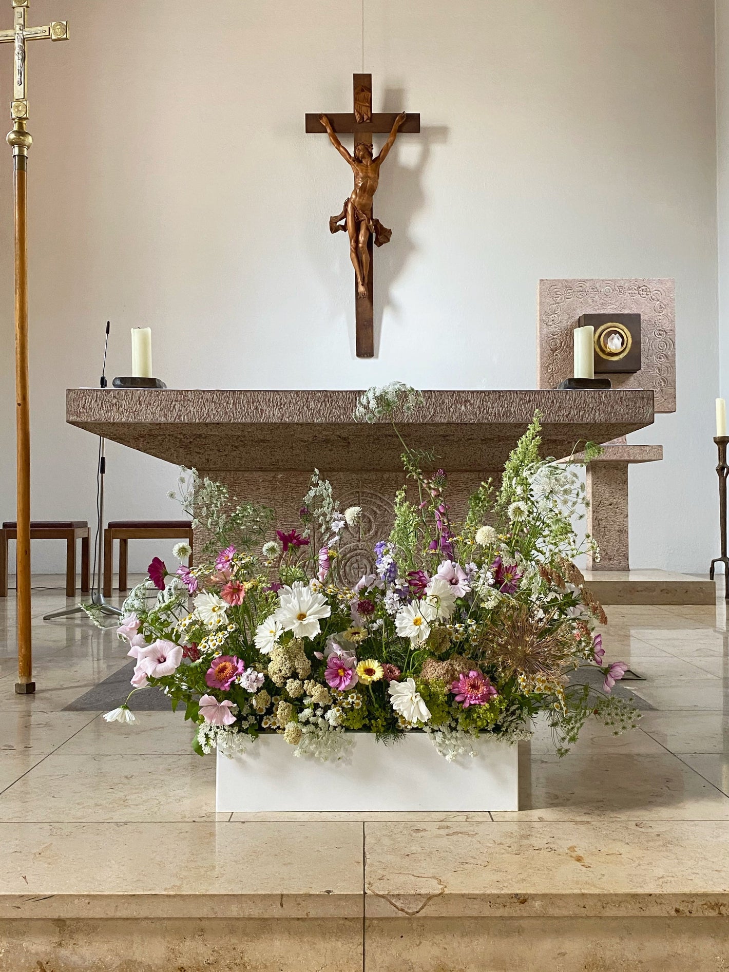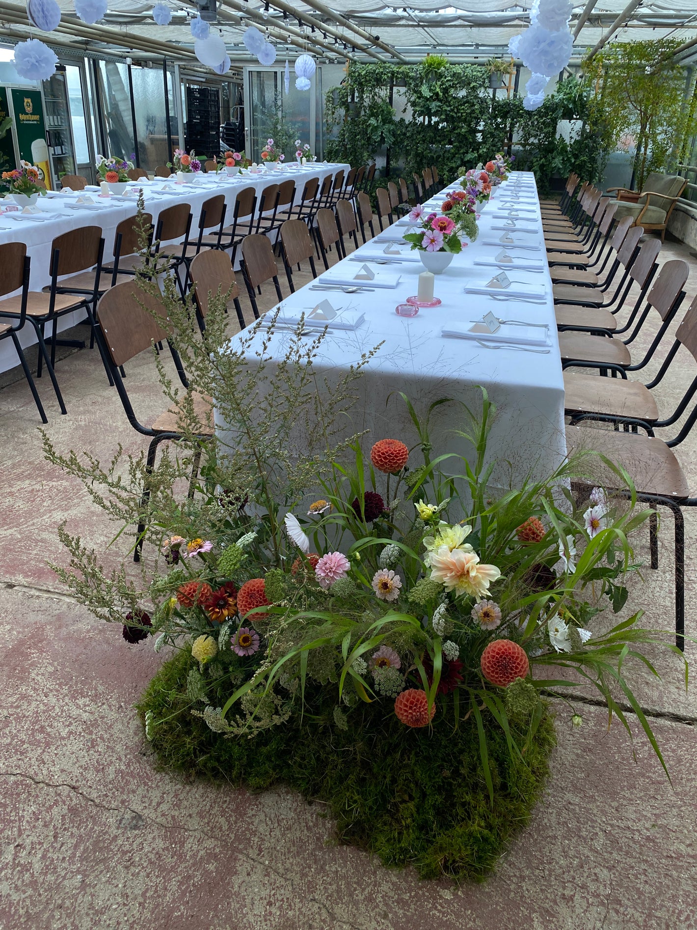 Alle Sträuße, Arrangements und Installationen kommen ohne Plastik, Steckmasse oder giftige Substanzen aus. Sie entstehen ausschließlich durch mechanische Techniken und bleiben dadurch ehrlich und lebendig.